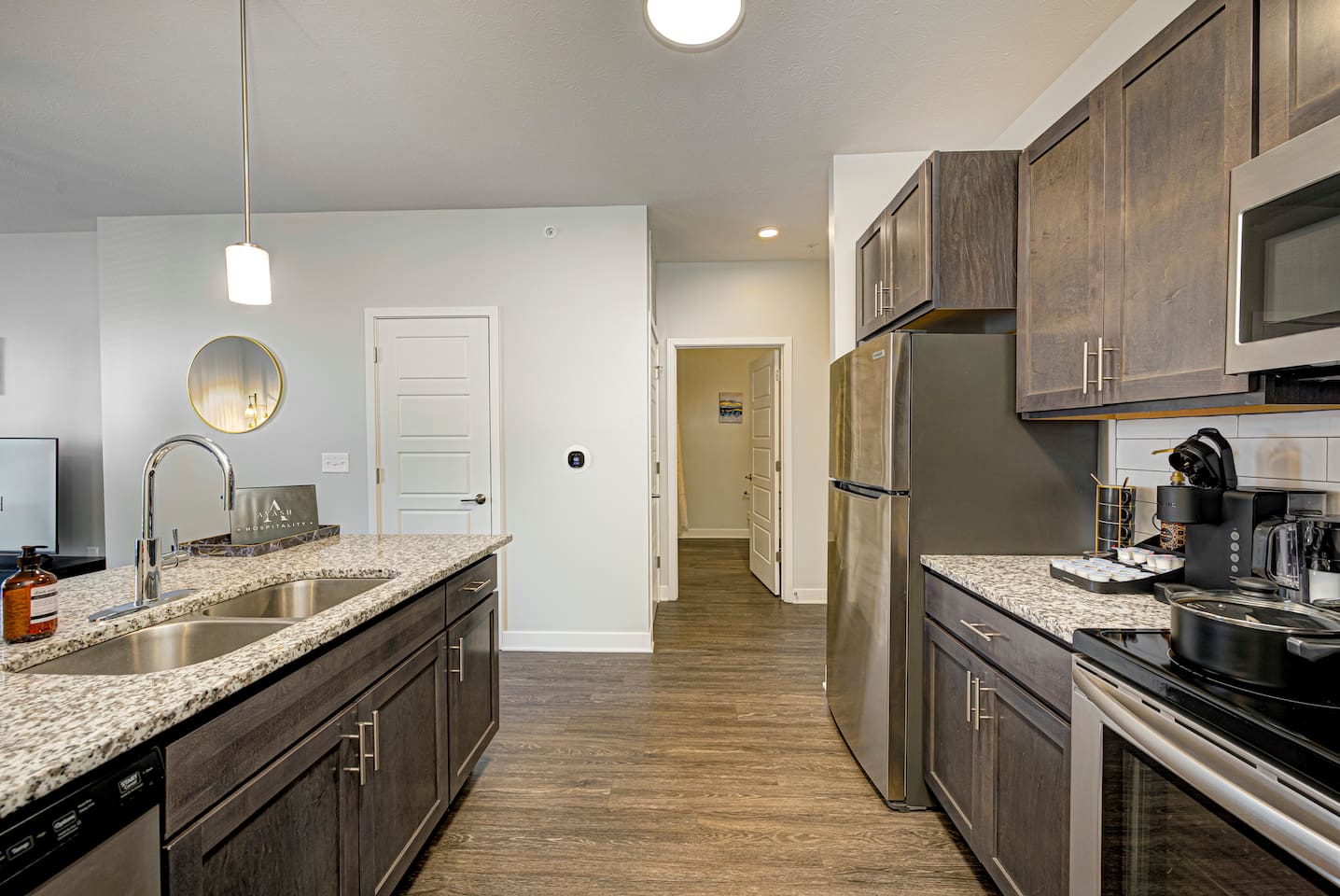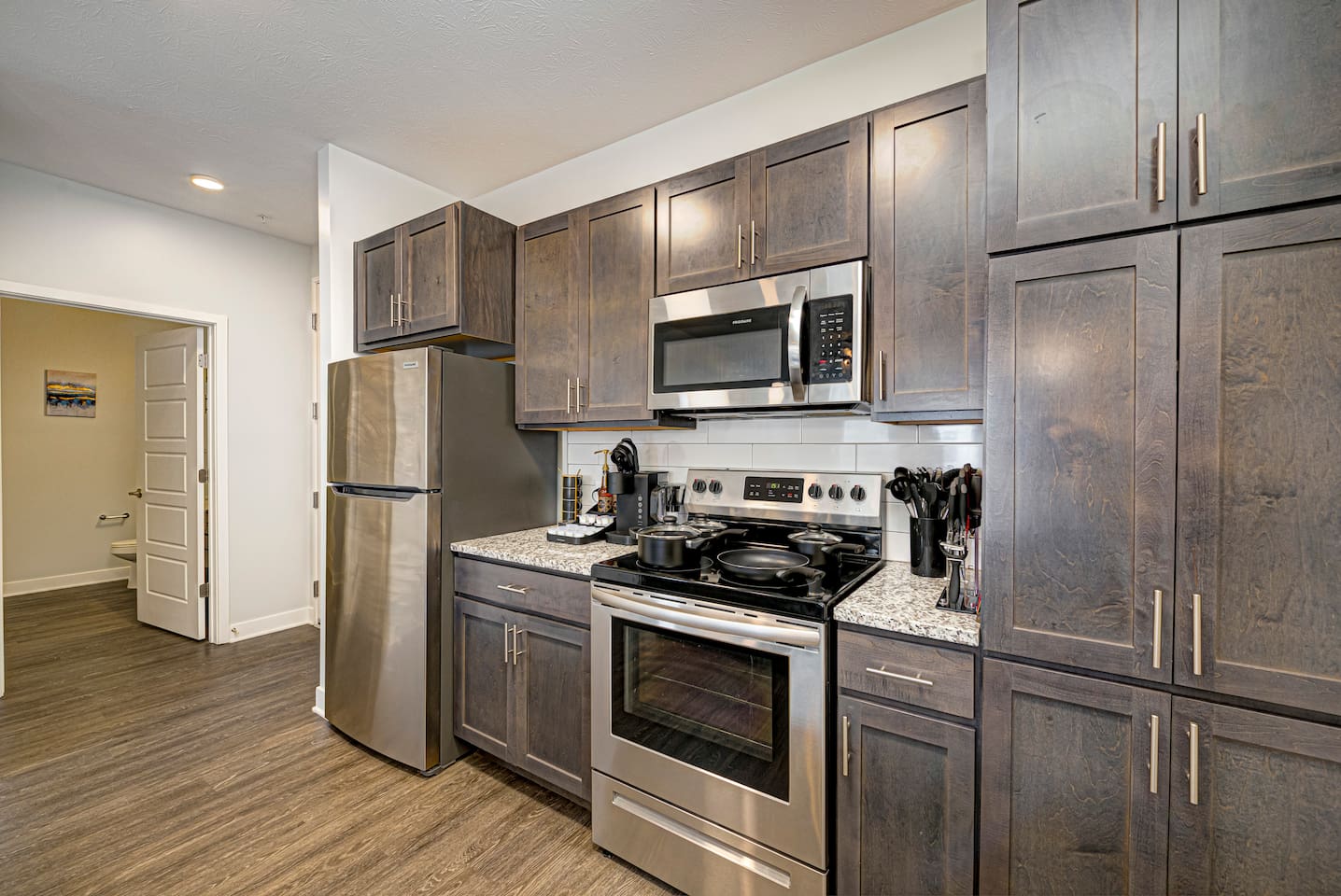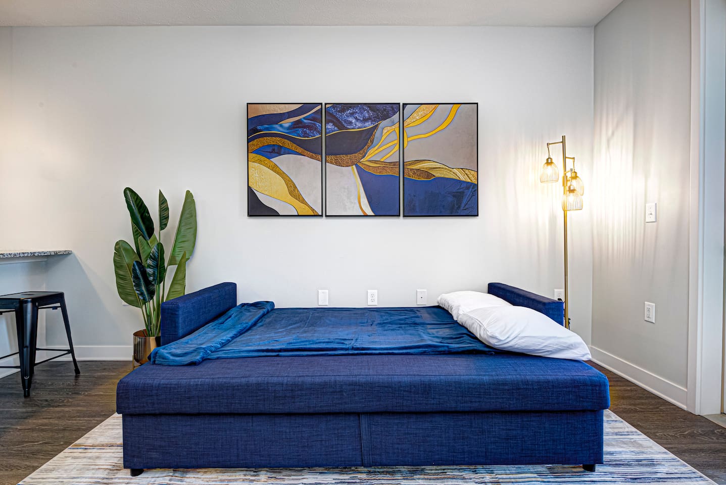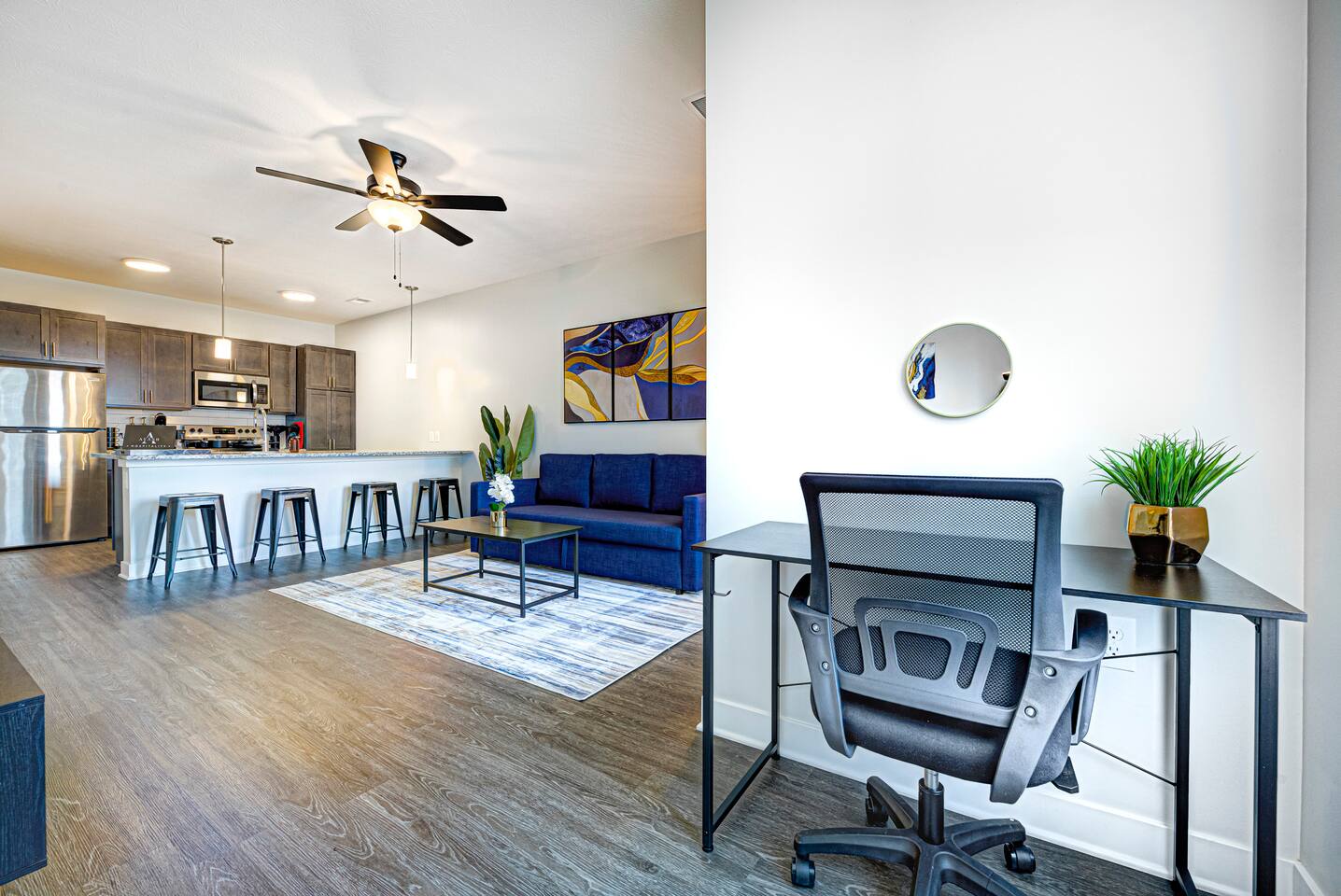 Welcome to Ayash's newest suite in Downtown Indianapolis. Located downtown, only 5 minutes from the nightlife of Mass Ave, and less than 10 minutes to IU Health Methodist, Riley, and Eshkenazi hospitals. A king bed, fully stocked kitchen, dedicated workstation, 24/7 gym access, and a beautiful city view balcony await you in this suite. *Medical professional discounts available for long-term stays*